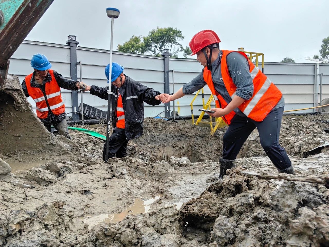作为重点项目的如通城际铁路三标南太湖大道及318国道给水管道迁改工程面临着工程难、任务重、时间紧的情况。在暴雨侵袭的天气里,水务集团建设公司的“战士”们奋战一线,竭力完成4个接水点的连接任务,保障了人民的生活、生产用水。